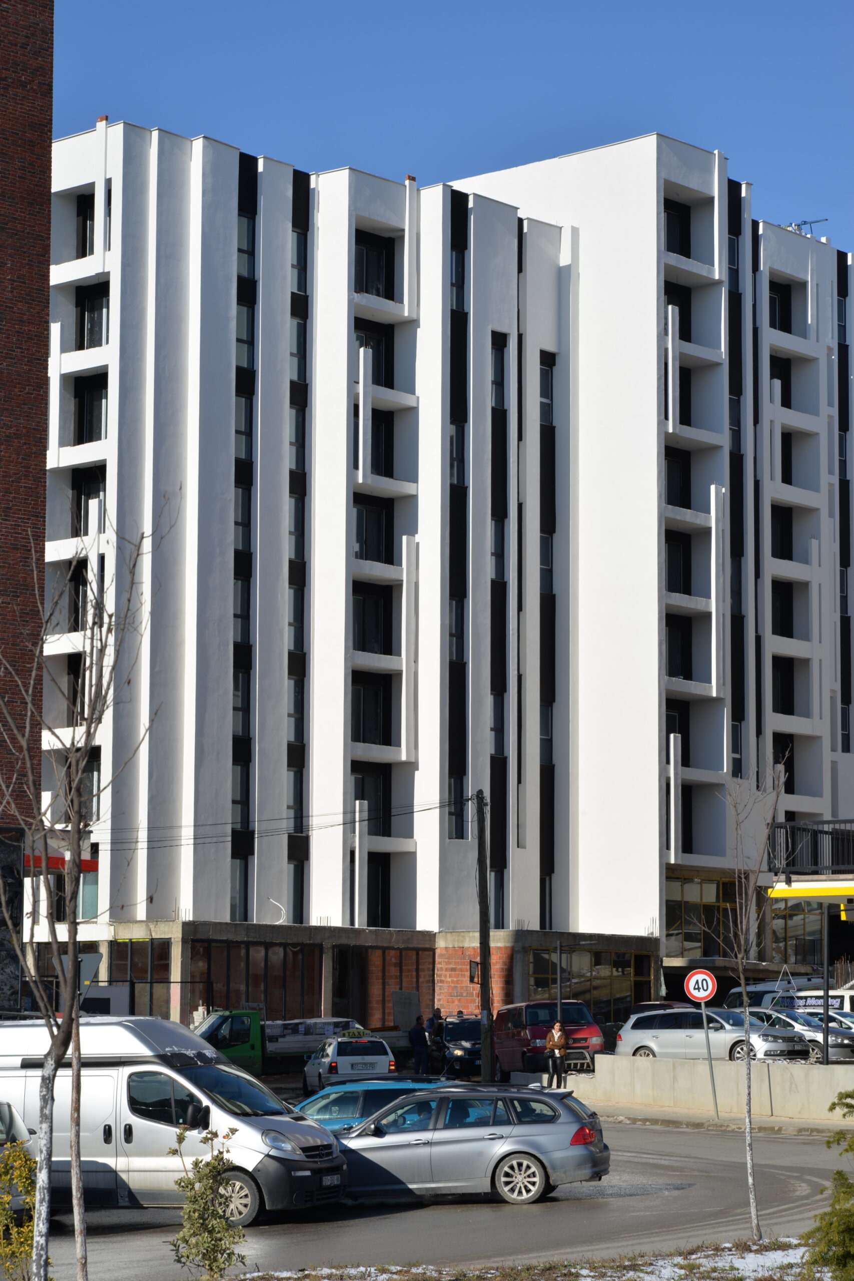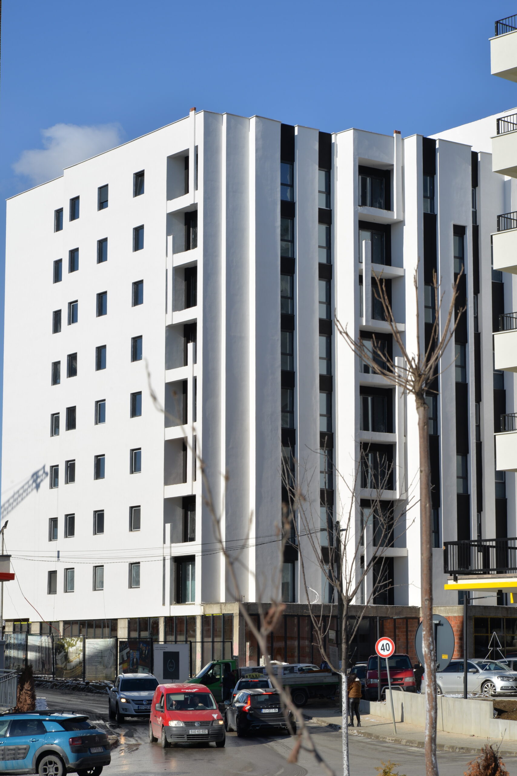 This building is a mix destination (store – apartments) within its structure. There are 88 apartments in 9000m2 and 1100m2 shops, coffee, restaurants etc., also minus four underground floors with 4300m2 parking for cars. It is located in Mati 1 in Prishtina in the street C.